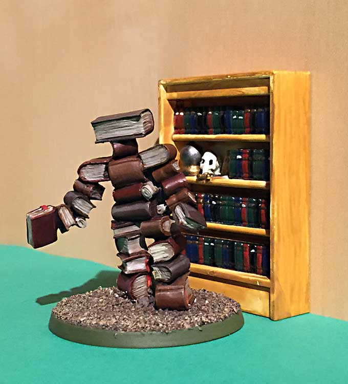 Once the books are assigned to their hit locations I spend a few minutes thinking about how they’ll affect the performance of the golem (hit points, armour class, move, strengths, weaknesses, etc.). Then we fight!